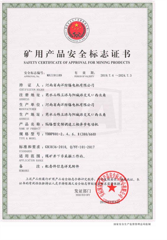 YBBP防爆電機(jī)煤安證