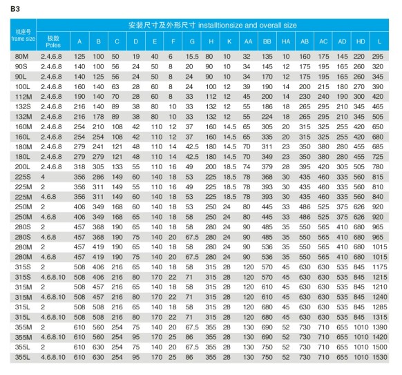 YX3系列高效三項(xiàng)異步電動(dòng)機(jī)規(guī)格型號(hào)表: