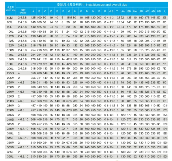 YX3-315L2-2 200 95.4 YX3-315L1-4 160 95.4 YX3-315M2-6 200 95.0