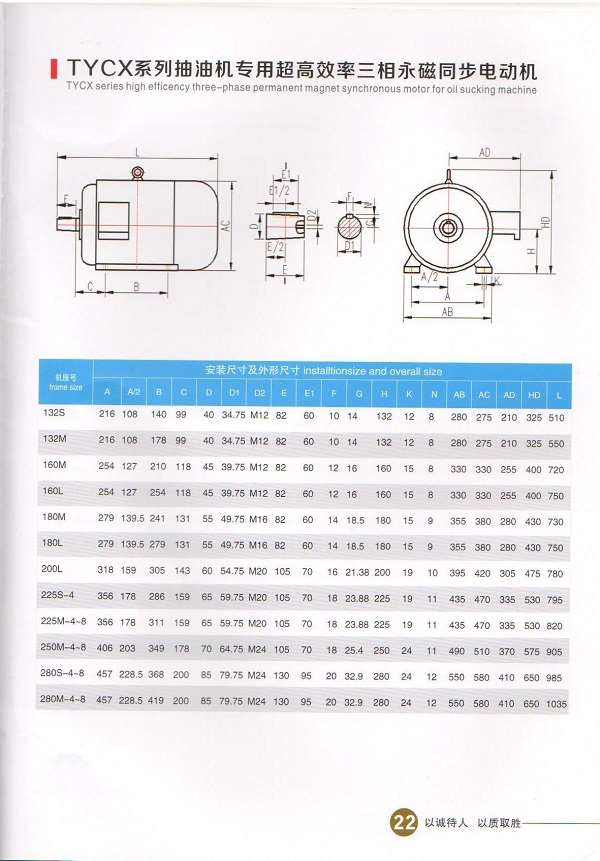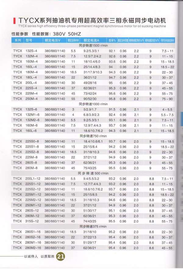 TYCX系列抽油機用高效率三相永磁同步電動機,該系列產(chǎn)品的效率指標(biāo)符合GB30253—2013《永磁同步電動機能效限定值及能效等級》的1級標(biāo)準(zhǔn),達到同等產(chǎn)品的國家先進水平。